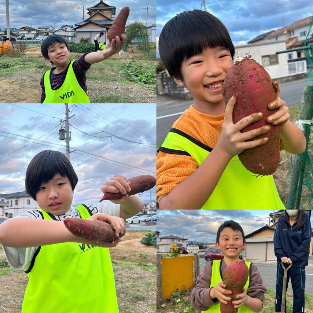 子どもたちが「採れた~!」と持ってきてくれたサツマイモは自分の顔よりも大きいサイズの物もあってとても驚きました😲