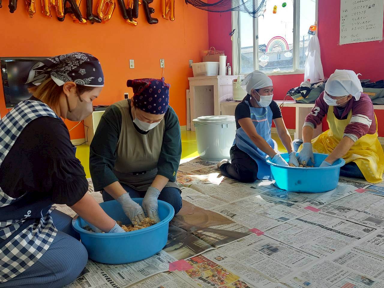 そんな中お母さん・お父さんは一生懸命、味噌作り👨‍🍳