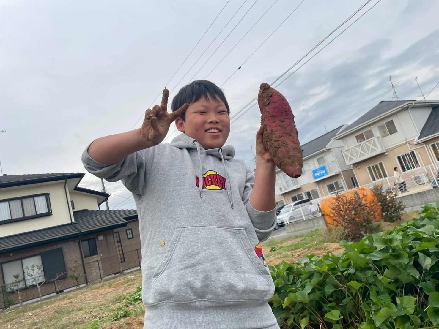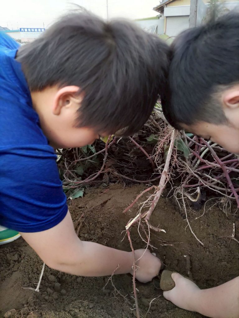 「掘れた~!」と立派なお芋を嬉しそうに見せてくれました!「やったね!」