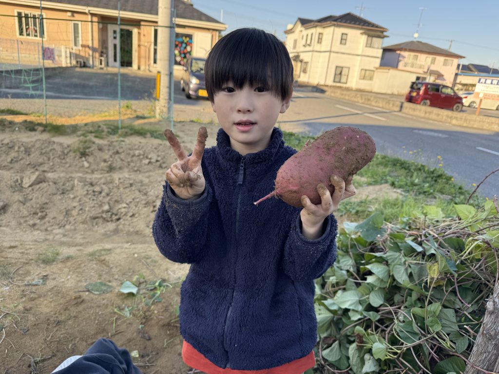 さつまいも掘りが始まると「大きいのとれた~」「泥がいっぱいついてる~」と大興奮💓