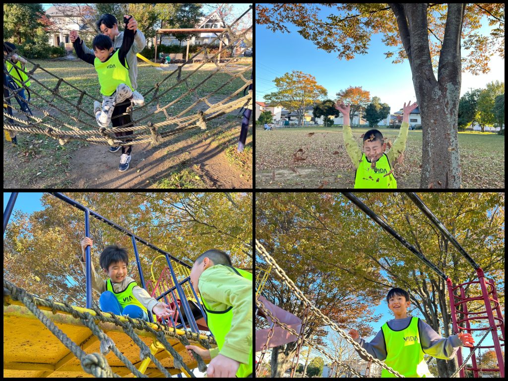 公園遊びは身体や頭をいっぱい使って遊びます。そうする事で危険回避の力や、話を聞くための注意を向ける力、力加減やコミュニケーション能力を高める機会にもなります😊
