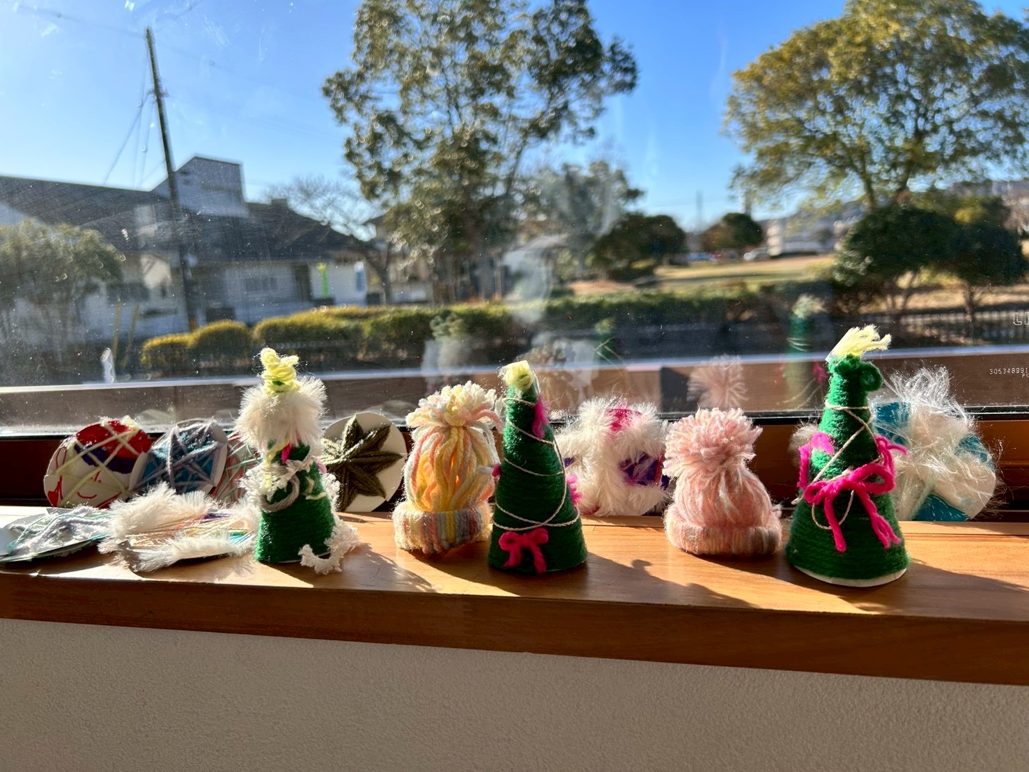 今回は、毛糸を使った『ニット帽』や『小さなクリスマスツリー』、『毛糸をかけてできるオーナメント』など自分の作りたいと思った飾りを作りました✨