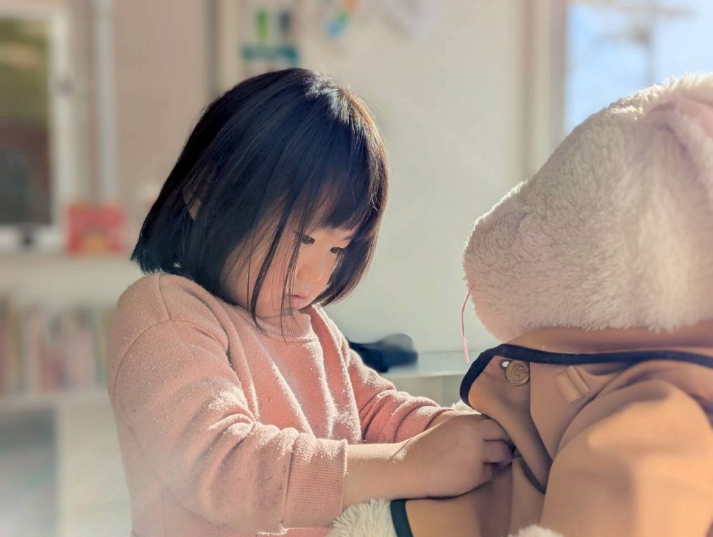個別活動は「身支度を整える」でチャックやボタンの練習をしています✴️