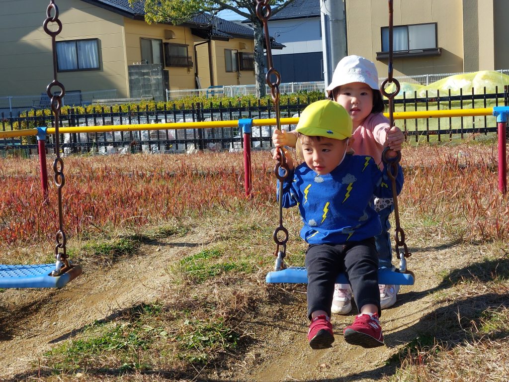 まだブランコを自分でこげないお友だちには「おしてあげるね~」と優しく手伝ってあげる姿も見られ、とてもほっこりしました♥️