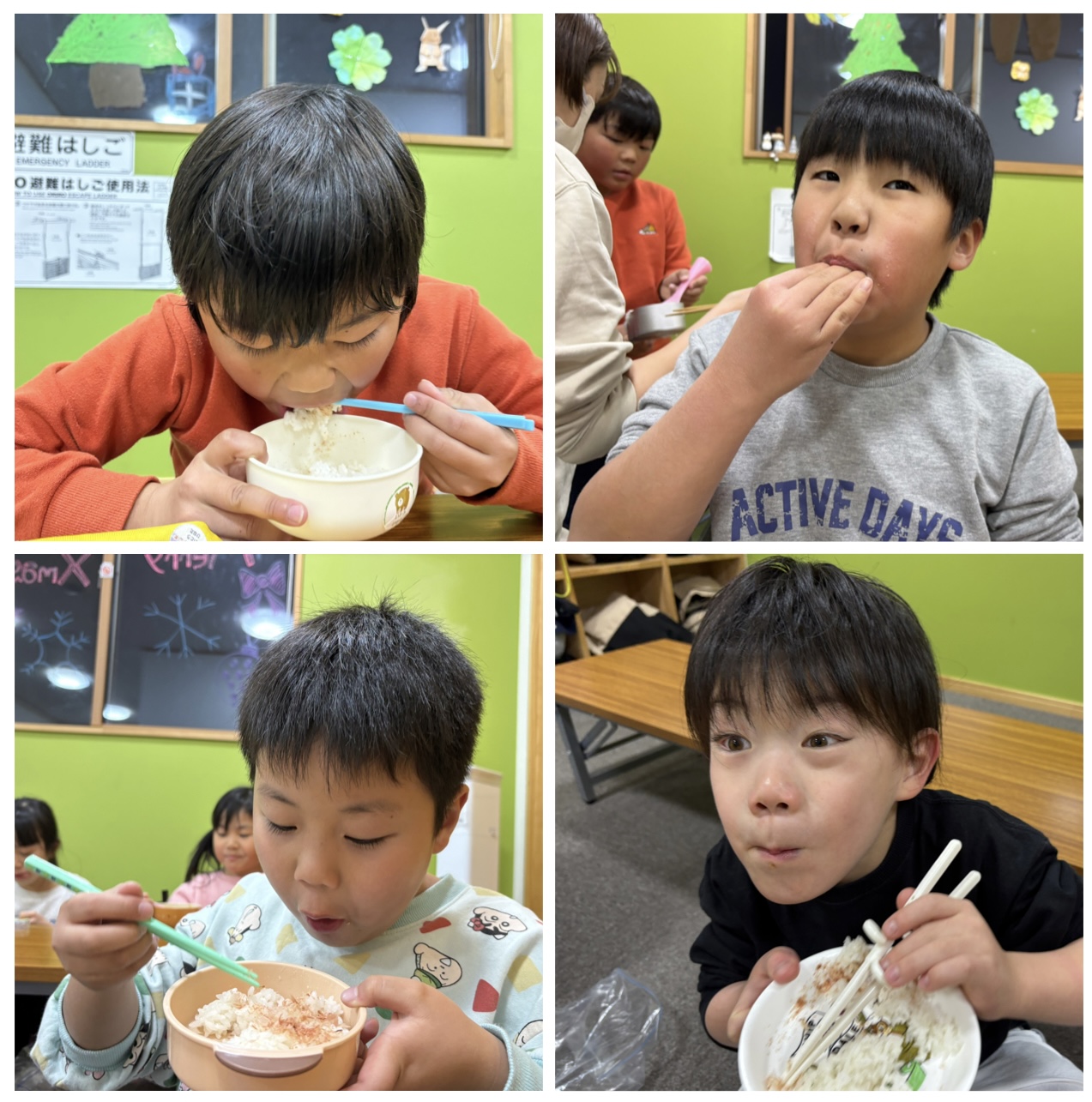 お腹ぺこぺこの子どもたちは無言で頬張っていました!
