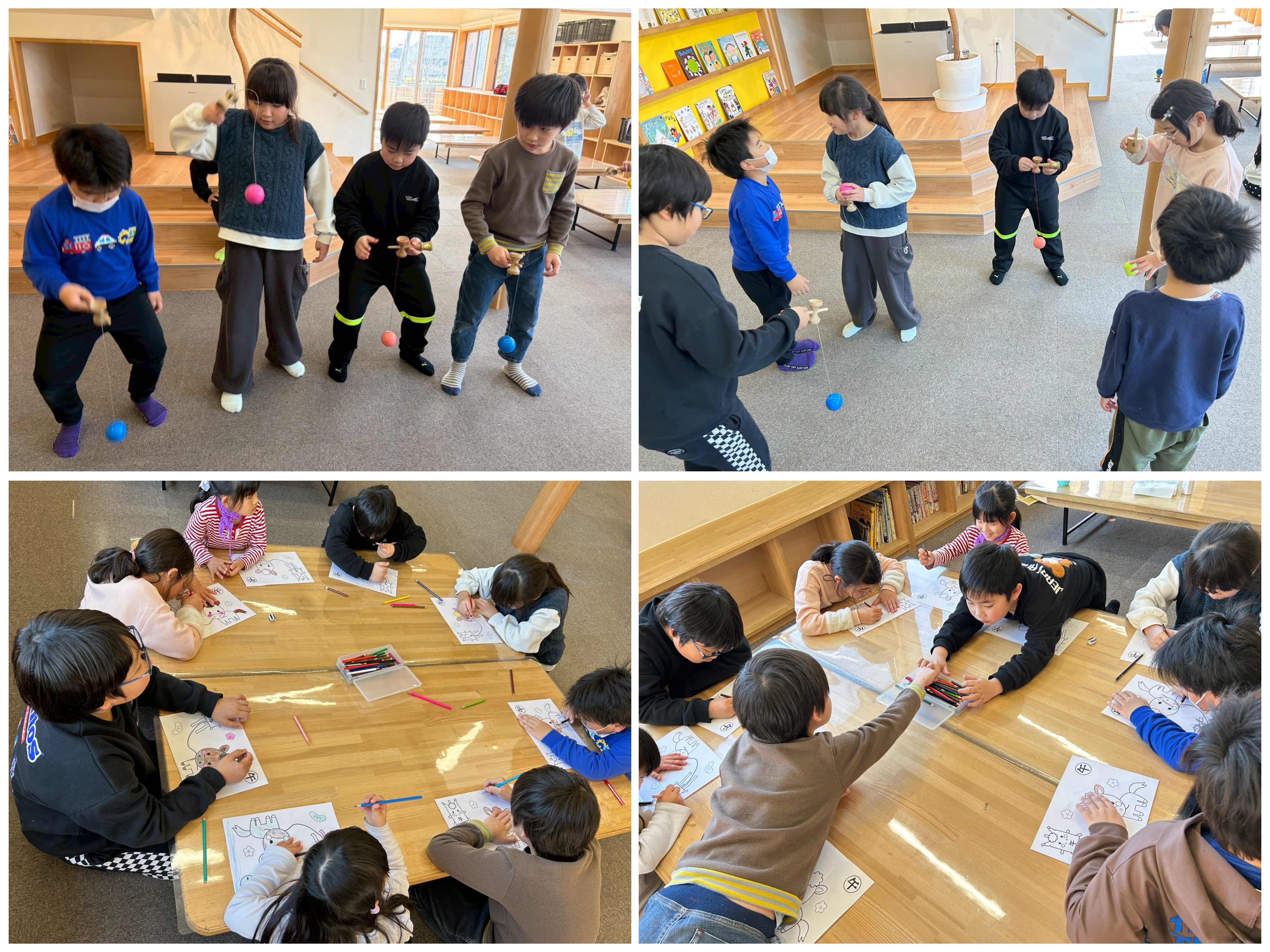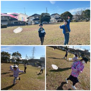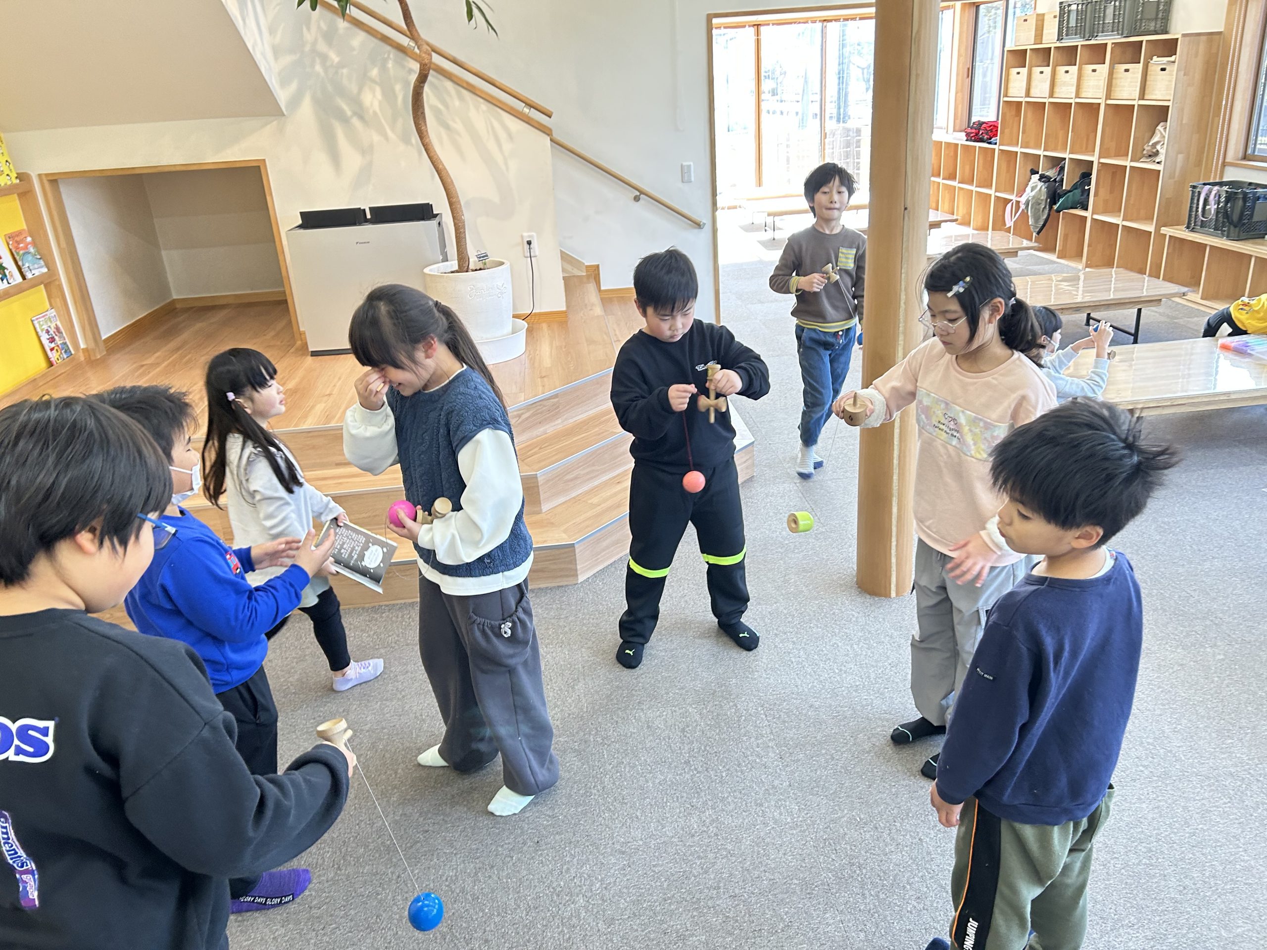 午前中は子どもたちで手作りした「たこあげ🪁」と、「けん玉」を行いました😊