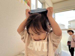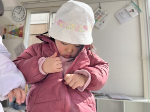 帽子や上着の着脱を活動に取り入れ、身の回りのことに親しみながら