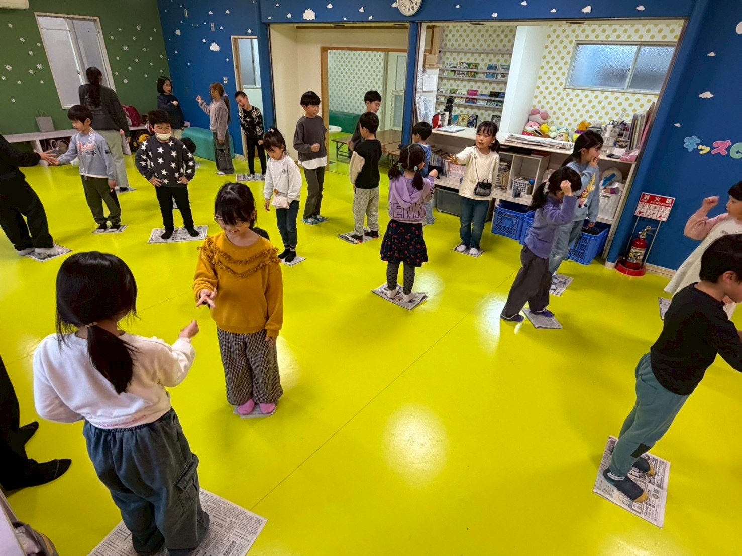 片足立ち耐久レースと新聞紙じゃんけんで