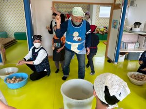 みんなで共同作業の末、完成した味噌は