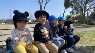 清掃活動では、小さな可愛い手に軍手をしっかりはめて出発!いつもお散歩している道を歩きはじめると、、、