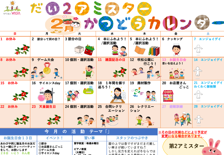(第2) 活動カレンダー2026年2月